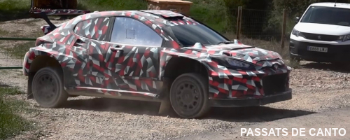 Après plusieurs séances de développement au Portugal puis en Croatie, la nouvelle Toyota WRC27 est cette semaine en Espagne sur la terre. Cependant le premier prototype qui se rapprochait plutôt d’une Celica a désormais évolué avec plusieurs changements qui font maintenant penser à une C-HR.