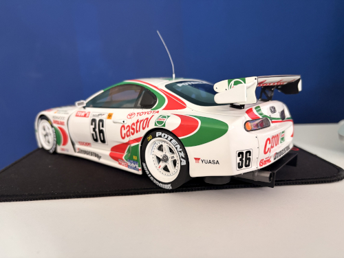 La Toyota Supra Racing GT500 est issue du Super GT (ex-JGTC), championnat de course sur circuit au Japon. Cette version extrême de la Toyota Supra Mk4 est engagée dans cette discipline à partir de 1995. Malgré de bons résultats, Toyota ne décroche le titre qu’en 1997 avec Pedro de la Rosa et Michael Krumm. Avec sa livrée Castrol, partenaire officiel d’alors de Toyota en compétition automobile, elle devient une icône de ce championnat.